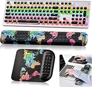 Kit de Repose-poignets pour Souris et Clavier, Pad de Clavier + Tapis de Souris, Repose-poignet en Mousse à Mémoire Hauteur Parfaite + Gel antidérapant, soulager la douleur au poignet, Carte du monde