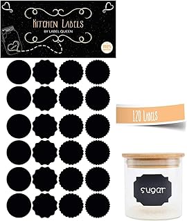 LabelQueen Lot de 120 étiquettes de cuisine rondes 4,5 cm - Pour bocaux en verre - Couleur : noir mat - Étiquettes pour étiquettes à épices et autocollants à confiture - 5 feuilles de 24 autocollants