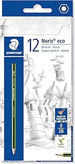 Staedtler Noris Eco, Crayons à papier 2B de très haute qualité, Fabriqués en bio-matériau innovant, Boîte en carton avec 12 crayons 2B, 180 30-2B VE