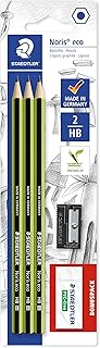 Staedtler Noris Eco, Crayons à papier HB de très haute qualité, Fabriqués en bio-matériau innovant, Étui blister avec 3 crayons HB, 1 gomme sans PVC et 1 taille-crayon, 18030SBK-1