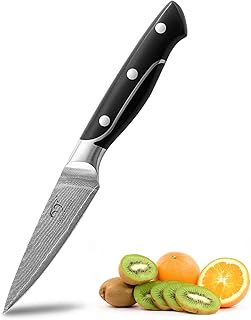 Couteau d'office Damas Couteau à fruits Lame 9cm Couteau à légumes Couteau de Cuisine Couteau de Chef Pro Grade 67 Layer VG-10 Couteau Ultra pointu en Acier Inoxydable, Couteau de Cuisine