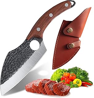 Akatomo couteau à couperet chinois à la main forgé cuisine Chef couteau couteau à désosser couteau à légumes couteau de boucher couteau à viand couteau à éplucher pour Camping en plein air BBQ (brown)