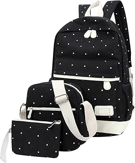 Sac à Dos Scolaire À Pois Cartable Fille Garçon Collège Sac a Dos Ecole Ado Sac d école College Sac a Dos Lycee Sac à Dos Lycée Sac d'épaule Sac de Messager Trousse Portefeuille Backpack Noir