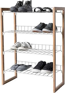 Compactor Étagère pour Chaussures 4 Niveaux Empilable Salomé, Structure Métallique et Tablettes en Polypropylène, Dim. : 58.5 x 29 x H.70.5 cm, RAN6958