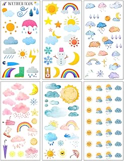 Lirener 6 Feuilles de Papier Washi DIY Bullet Journal Autocollant adhésif avec des Fleurs de Cerisier, Licorne et météo, Kids Craft Scrapbooking Cartoon Autocollant fixé pour Le Journal, d'album