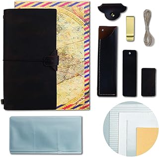 Carnet De Voyage A5, Carnet de Notes Voyage Diary Notebook Croquis Dessin Rechargeable Journal Cuir Vintage Cahier Bloc-Notes de Journal Vierge(Marron)