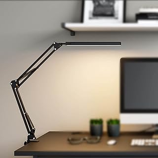 Lampe de bureau à LED SKYLEO avec pince,lampe de lecture oculaire à intensité variable,lampe à bras pivotant à 3 modes de couleurs,lampe de table à pince USB,lampe à lumière du jour pour le bureau