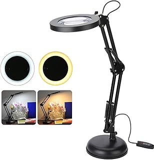 Loupe à Lampe 5X Lampe de Bureau Lampe de Loupe avec Bras Pivotant Réglable 3 Couleurs D'éclairage Verre de 10,5 cm/4,13 'de Diamètre
