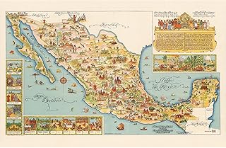 Pictorial Map of Mexico 1931 Vintage Art Print Canvas Premium Wall Decor Poster Mural Carte Mexique Ancien Mur Déco Affiche