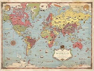Map Chase 1931 Mercator World Pictorial Chart Premium Wall Art Canvas Print 18X24 inch Carte Monde Mur