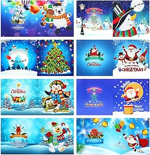 Lushandy 8pcs Cartes de vœux de Noël,Diamond Painting Christmas Cards Broderie Diamant Kit 5d Bricolage Diamant Peinture Carte de voeux De Noël Les cloches de Noël, bonhomme de neige Noël Cadeau