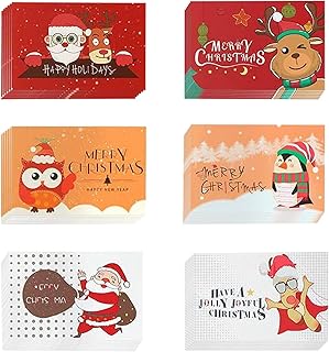 HOWAF 144 Pcs Mini Cartes de Noël, Noël Cartes de vœux et enveloppes, Cartes de Correspondance Vierges, Cartes de Noël, 24 Motifs de fêtes, Noël étiquettes d'emballage Cadeau Artisanales