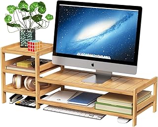 SUMGOTT Support pour écran d'ordinateur avec 2 Niveaux et étagère de Rangement pour Organisateur de Bureau, Support d'écran de Bureau pour Ordinateur Portable pour Maison, Bureau, école