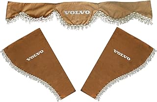 AutoCommerse Lot de 3 rideaux cantonnière en satin avec glands blancs pour pare-brise avant + fenêtres latérales pour camions FH FM FL FE série FE poids lourds Beige